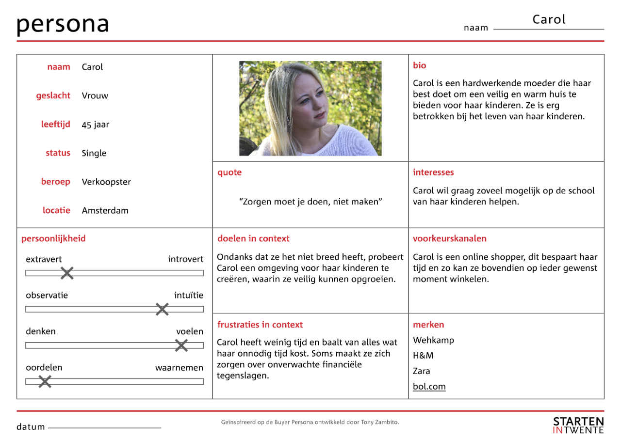 - Frustraties: wat zijn de redenen dat jouw Persona ongelukkig is? Wat mist er in zijn of haar leven?